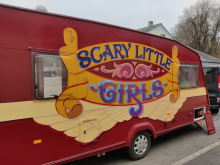 A caravan of stories - "Karavan an Chi Drolla" - rolled up to the hall carpark today and visitors heard tales short, long, familiar, and strange.