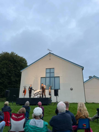 Live on stage outdoors with the magnificant backdrop of Grampound Hall.