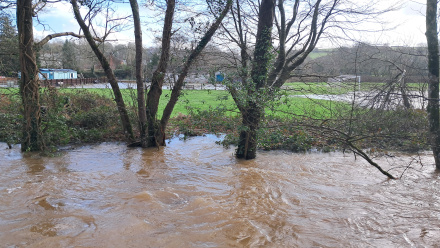 The river didn't burst its banks but it came very close. The recreation ground is on a flood plain and will at times flood from the river - not this time though.